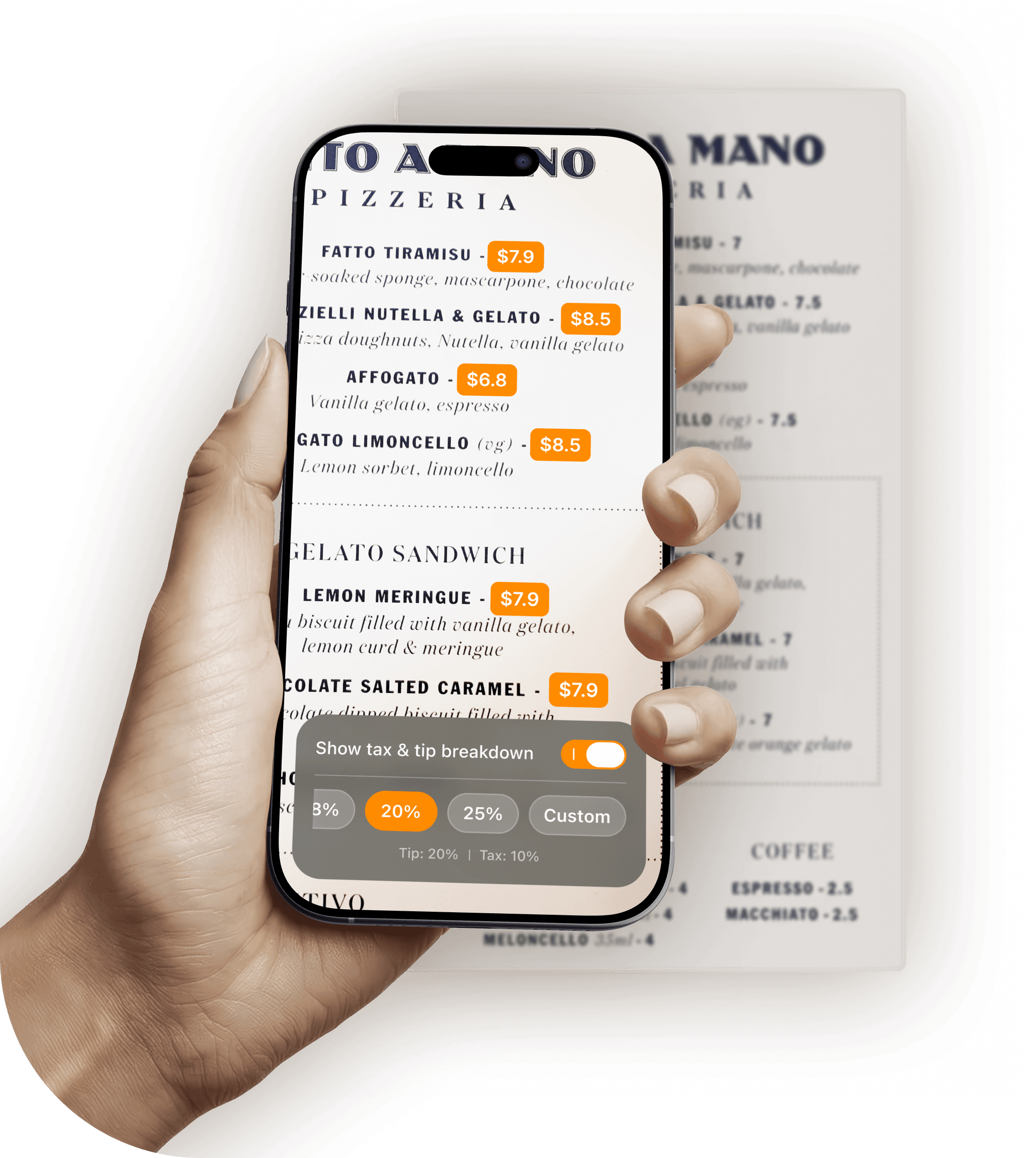 PriceWise augments menu prices with tax and tip in real time, so you know the true cost and can budget confidently.